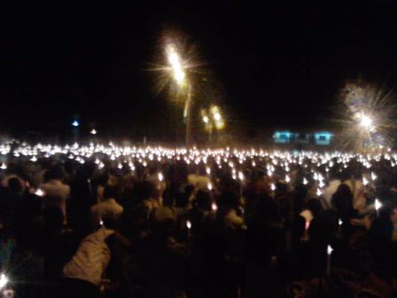 Vingt minutes après mon départ de la maison, j’étais enfin à l’église. Ce fut la surprise. Les balcons et les devantures des bâtiments de l’école primaires de la paroisse : occupés par des gens ; d’ailleurs, toute la cours de l’église était noire de monde. Les 5000 chaises en plastique achetées il y a deux ans par les paroissiens : toutes occupées, comme les centaines d’autres qu’il y avait avant, ainsi que les dizaines de bancs. Prévoyants, certains paroissiens ont préféré venir avec leur propre siège ; d’autres avec des nattes ou des morceaux de pagne qu’il occupaient à même le sol.